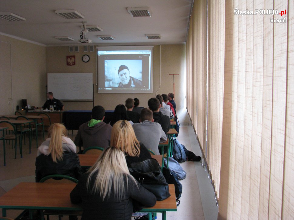Handel ludźmi uznawany jest za współczesną formę niewolnictwa. To przestępstwo polegające na odebraniu wolności tym, którzy padają jego ofiarą i wykorzystaniu ich w celu osiągnięcia korzyści. Na próbę zwerbowania przez grupy przestępcze trudniące się handlem ludźmi szczególnie narażeni są ludzie o trudnym położeniu, słabo wykształceni, bezrobotni, nie mający wystarczających środków do życia, a także wszyscy ci, którzy planują wyjazd za granicę w poszukiwaniu pracy i lepszego życia. O tym, jak uniknąć tego procederu i nie wpaść w pułapkę przestępców opowiadał uczniom trzecich klas Powiatowego Zespołu Szkół w Bieruniu asp. sztab. Szymon Jeleń. Podczas spotkań policjant zaprezentował młodzieży kilka filmów o treściach związanych z handlem ludźmi, które wymagały zaangażowania odbiorców i układania losów bohaterów. Dzięki temu młodzi ludzie mieli okazję dowiedzieć się, jakie zachowania mogą świadczyć o procederze związanym z handlem ludźmi oraz przekonać się, jak ważna jest postawa i pomoc świadków. Prelekcje odbyły się w dniach 19 i 20 października br. Uczniowie bardzo chętnie i aktywnie w nich uczestniczyli.