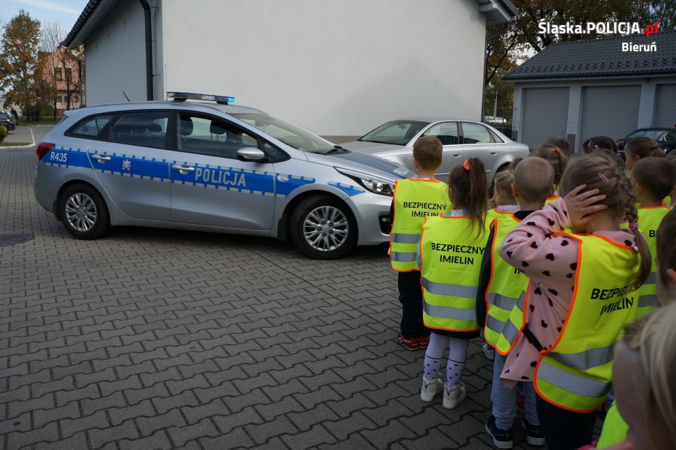 „Jagódki” z Przedszkola Miejskiego w Imielinie odwiedziły Komendę Powiatową Policji w Bieruniu. Dzieci miały okazję zwiedzić jednostkę, zapoznać się z pracą policjantów, a także obejrzeć policyjny sprzęt. Od mundurowych maluchy otrzymały odblaskowe zawieszki.