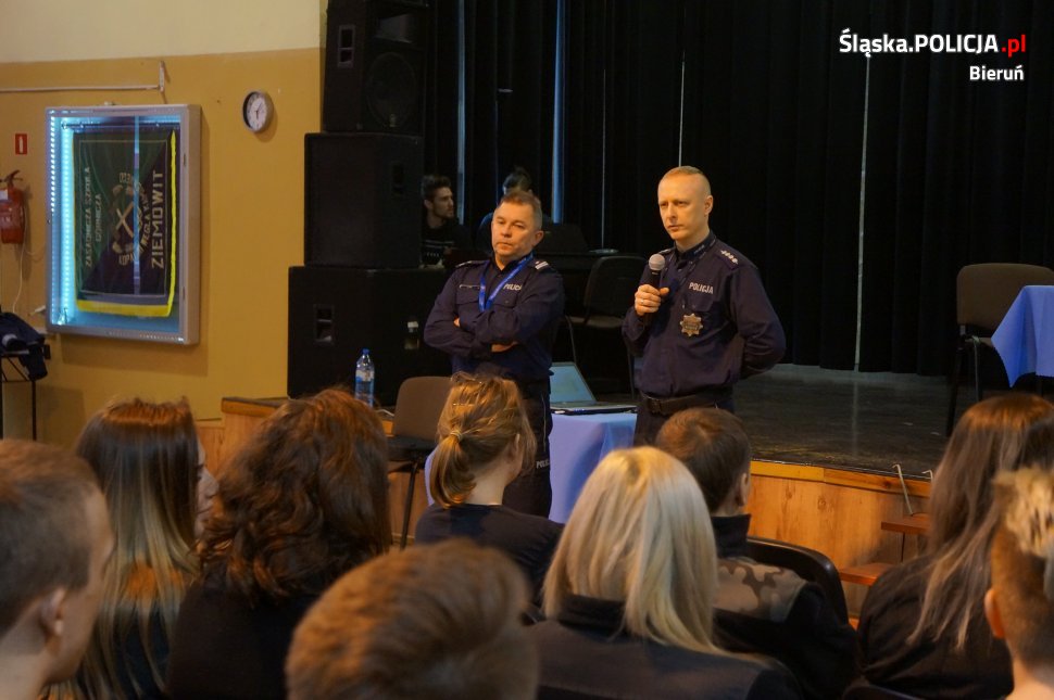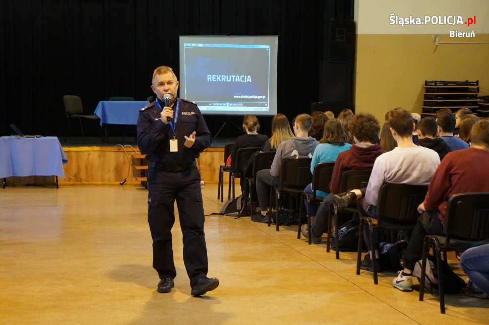 W Powiatowym Zespole Szkół w Lędzinach odbyło się spotkanie w ramach kampanii promocyjno - informacyjnej pod nazwą "Policję tworzą ludzie... twórzmy ją razem". W inicjatywie wzięli udział uczniowie najstarszych klas oraz przedstawiciel wydziału doboru i szkolenia katowickiej komendy wojewódzkiej. Spotkanie z młodzieżą było też okazją do przybliżenia funkcjonalności "Krajowej Mapy Zagrożeń Bezpieczeństwa". Temat ten omówił profilaktyk z bieruńskiej komendy.