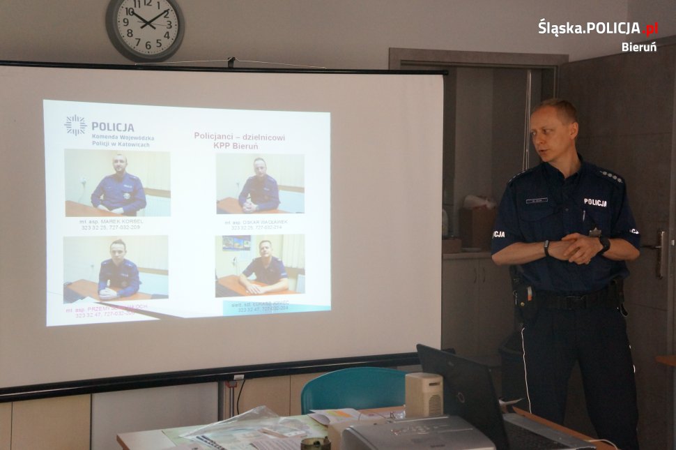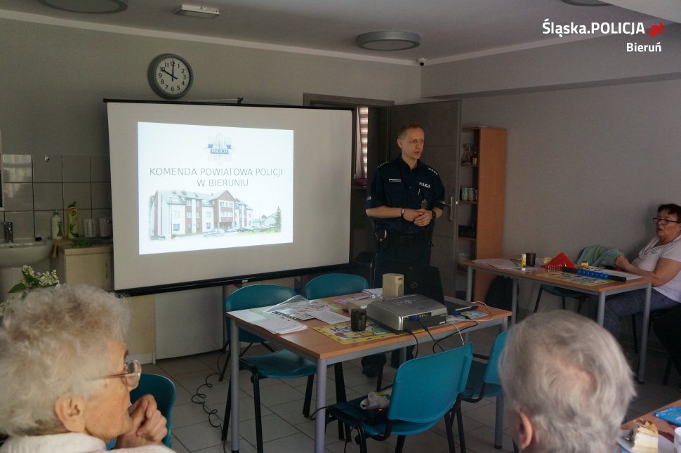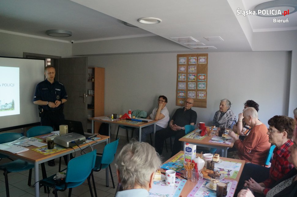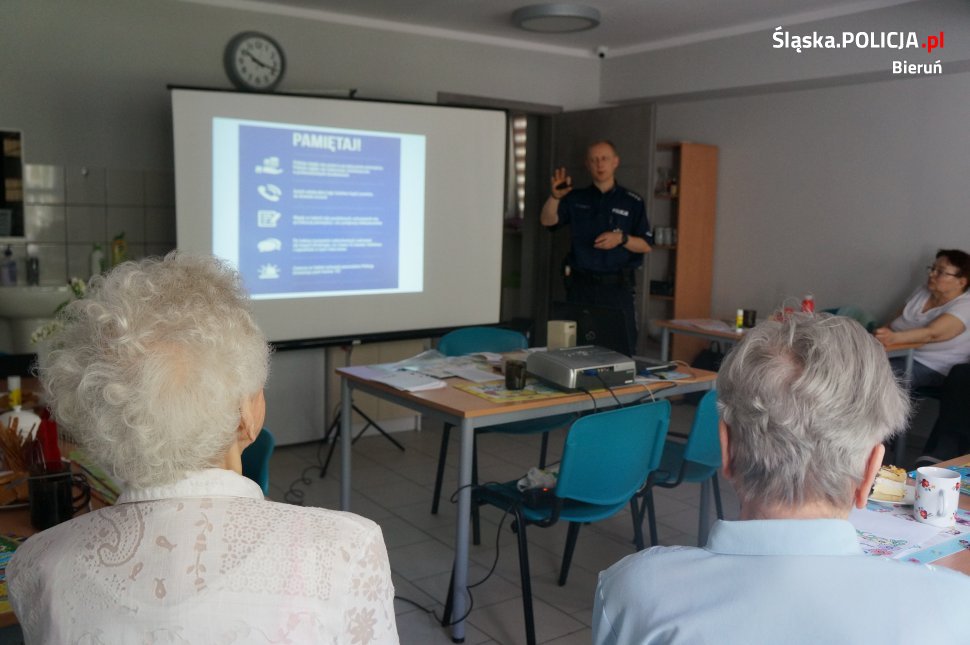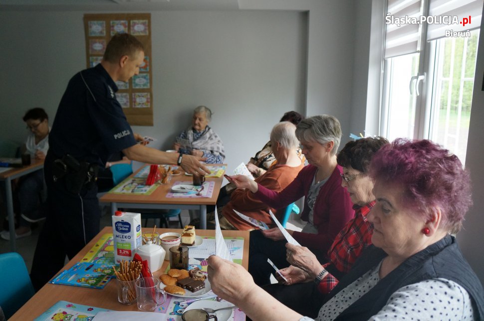 W Dziennym Domu "Senior+", działającym przy bieruńskim ośrodku pomocy społecznej, policjanci spotkali się z najstarszymi mieszkańcami miasta. Seniorzy dowiedzieli się jak nie dać się oszustom i uniknąć kradzieży. Poznali dzielnicowych ze swojego rejonu, a także ideę krajowej mapy zagrożeń bezpieczeństwa.
