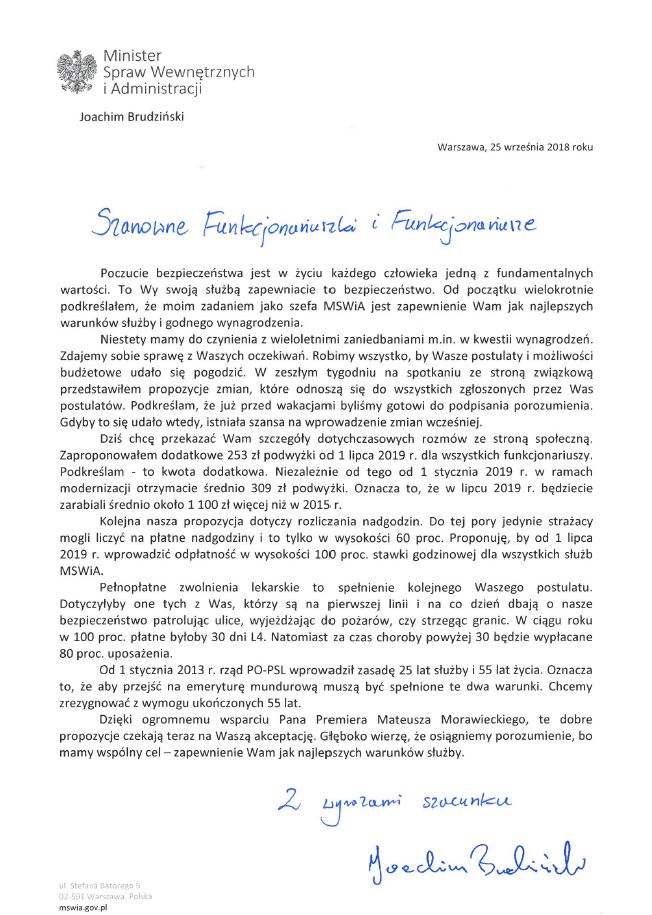 List ministra Joachima Brudzińskiego do funkcjonariuszek i funkcjonariuszy służb mundurowych podległych MSWiA Data publikacji 26.09.2018 Powrót Drukuj