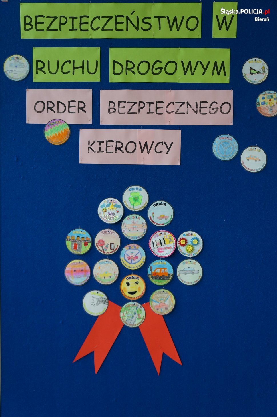 Bieruńscy policjanci wraz z uczniami ze Szkoły Podstawowej nr 1 w Chełmie Śląskim przeprowadzili akcję, podczas której zatrzymywani do kontroli drogowej kierowcy za przepisową jazdę otrzymywali specjalne, przygotowane przez dzieci ordery.