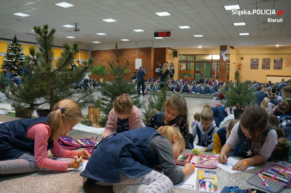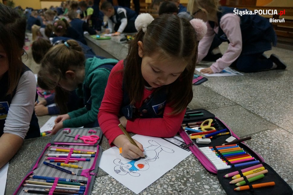 We wtorek 18 grudnia dzieci ze szkół i przedszkoli powiatu bieruńsko-lędzińskiego, które przyłaczyły się do inicjatywy Komendy Wojewódzkiej Policji w Katowicach i Centrum Rozwoju Lokalnego z Zawiercia, punktualnie o 10.00 przystąpiły do kolorowania Sznupka – maskotki Śląskiej Policji. Ustanawianie Rekordu Polski w liczbie uczestników biorących udział w akcji poprzedzone było krótkimi pogadankami policjantów z dziećmi o bezpieczeństwie w ruchu drogowym. Mundurowi towarzyszyli blisko pół tysiąca maluchom podczas kredkowych zmagań i dopingowali im w biciu rekordu. Pokolorowane obraki Sznupka dzieci mogły zabrać do domu. Mają im przypominać jak ważna jest ostrożność na drodze i przestrzeganie zasad ruchu drogowego.