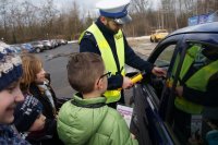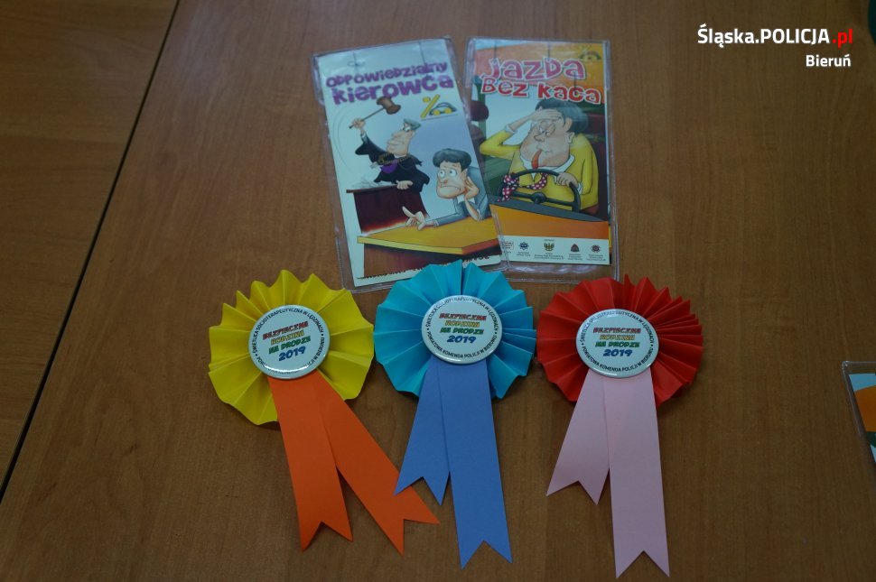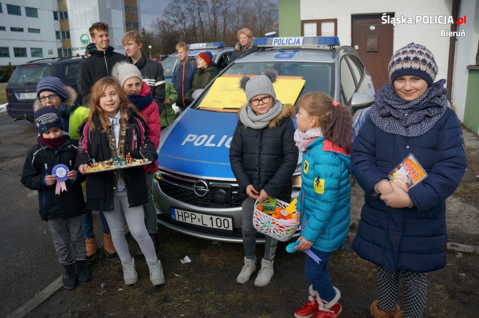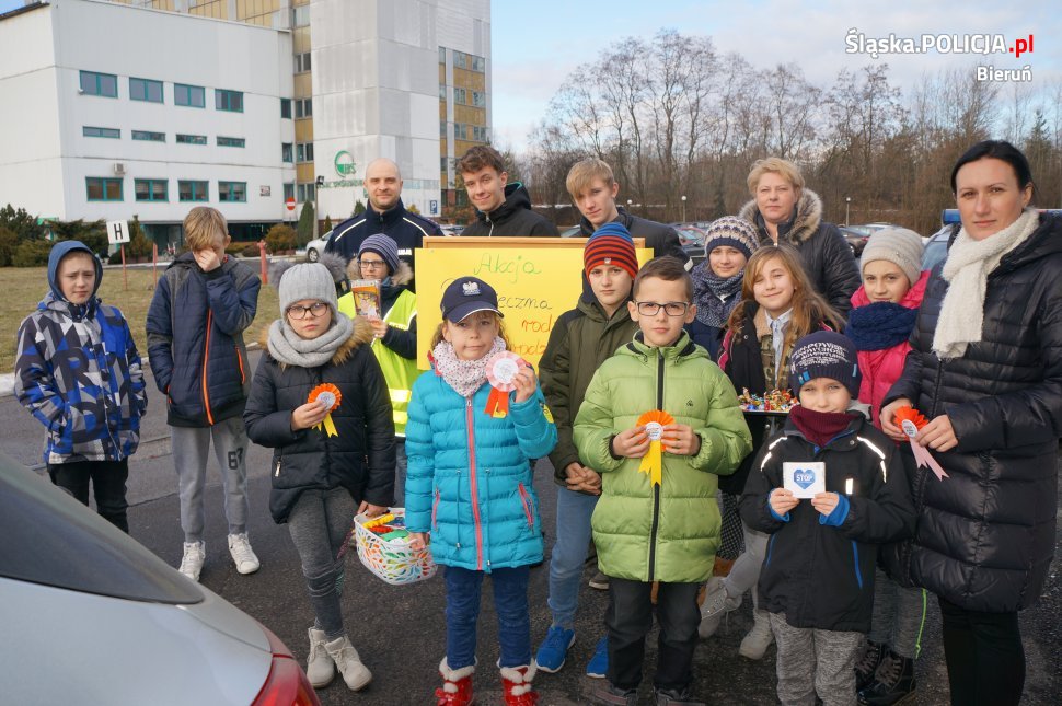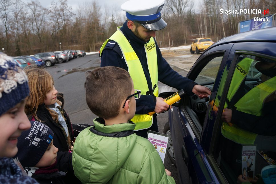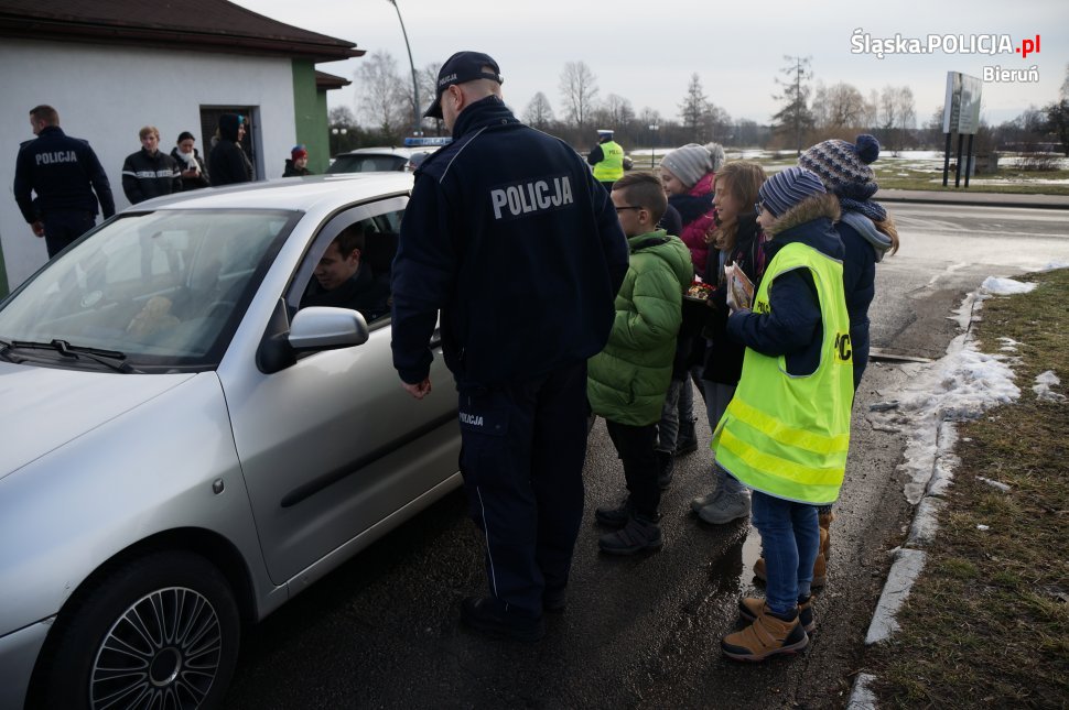 Bieruńscy policjanci wraz z dziećmi ze świetlicy socjoterapeutycznej Miejskiego Ośrodka Pomocy Społecznej w Lędzinach przeprowadzili wczoraj wspólną akcję. Jej celem była poprawa bezpieczeństwa w ruchu drogowym. Zatrzymywani do kontroli kierowcy, za przepisową jazdę otrzymywali przygotowane przez najmłodszych medale wzorowego kierowcy.