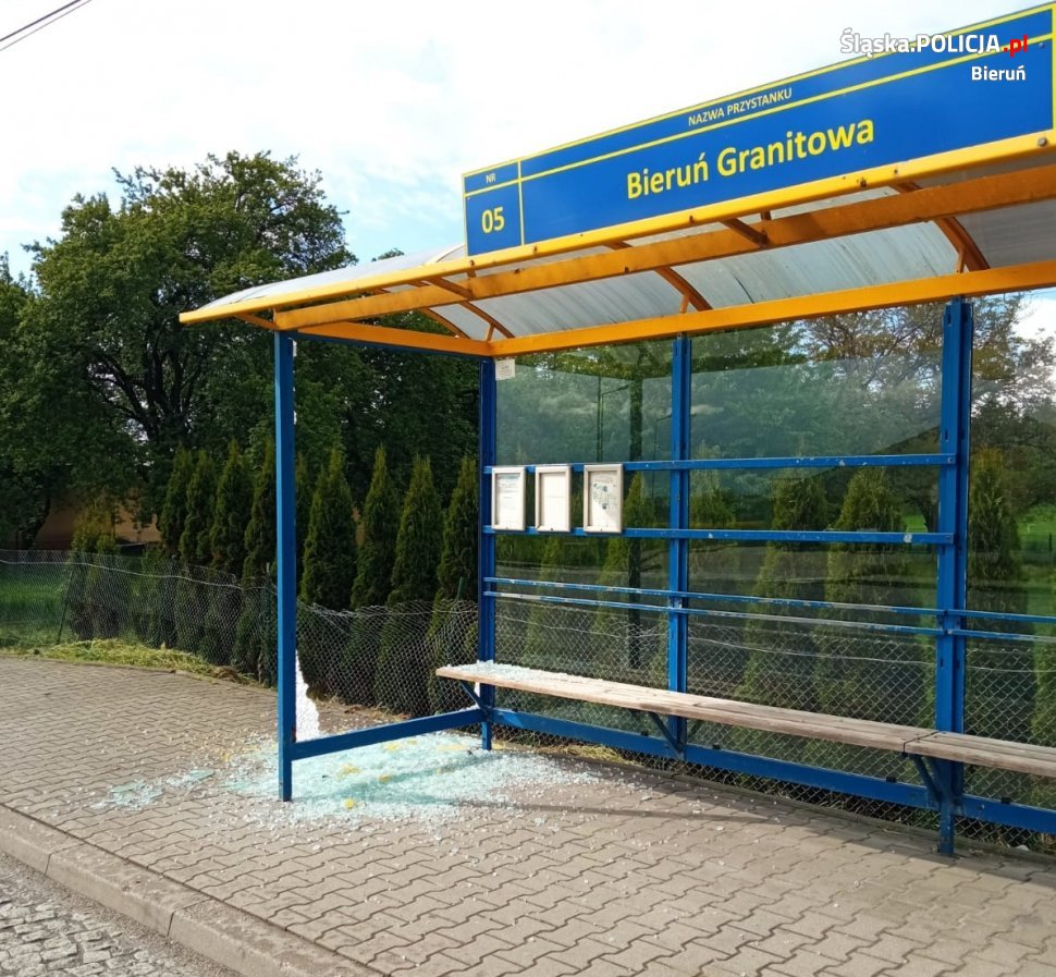 Bieruńscy policjanci zatrzymali mężczyznę, który rozbił szybę wiaty jednego z przystanków na ulicy Warszawskiej w Bieruniu. 18-letni mieszkaniec Tychów w tym samym dniu popełnił też inne przestępstwo na terenie swojego miasta. Śledczy przedstawili mu zarzuty za oba występki. O dalszym losie 18-latka zadecyduje teraz sąd.