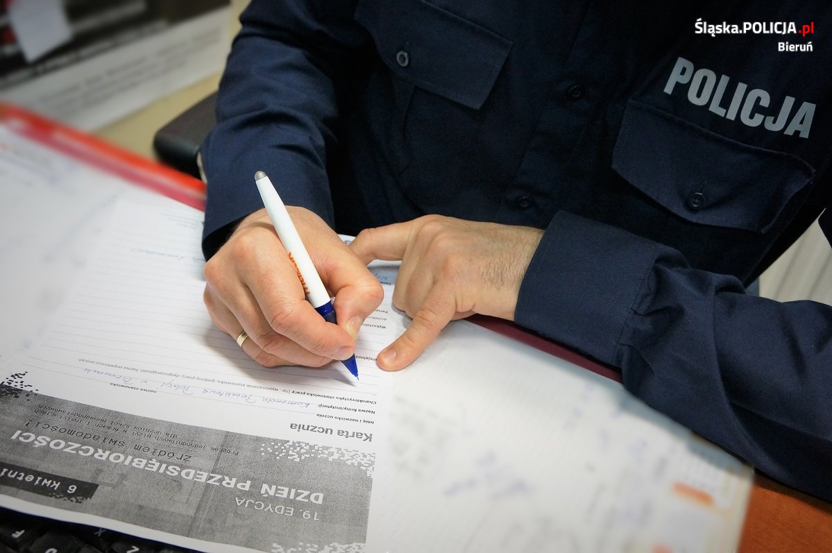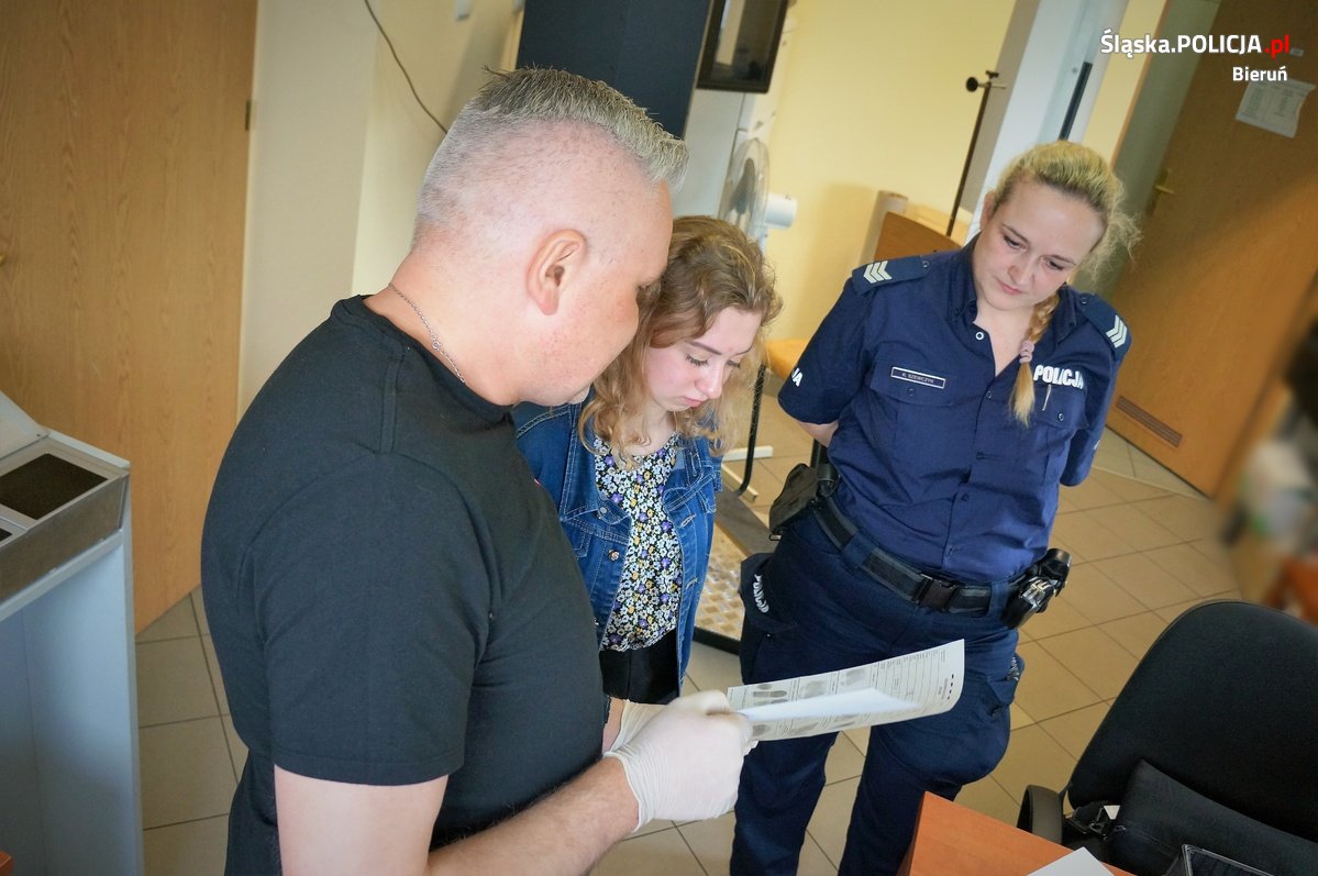 Kilkugodzinny pobyt w bieruńskiej komendzie dostarczył naszemu gościowi wiele pozytywnych wrażeń i pozwolił zweryfikować wyobrażenia o wymarzonym zawodzie. Cieszymy się z usłyszanej na zakończenie pobytu deklaracji od praktykantki, że w przyszłości będzie dążyć do wstąpienia w szeregi Policji.