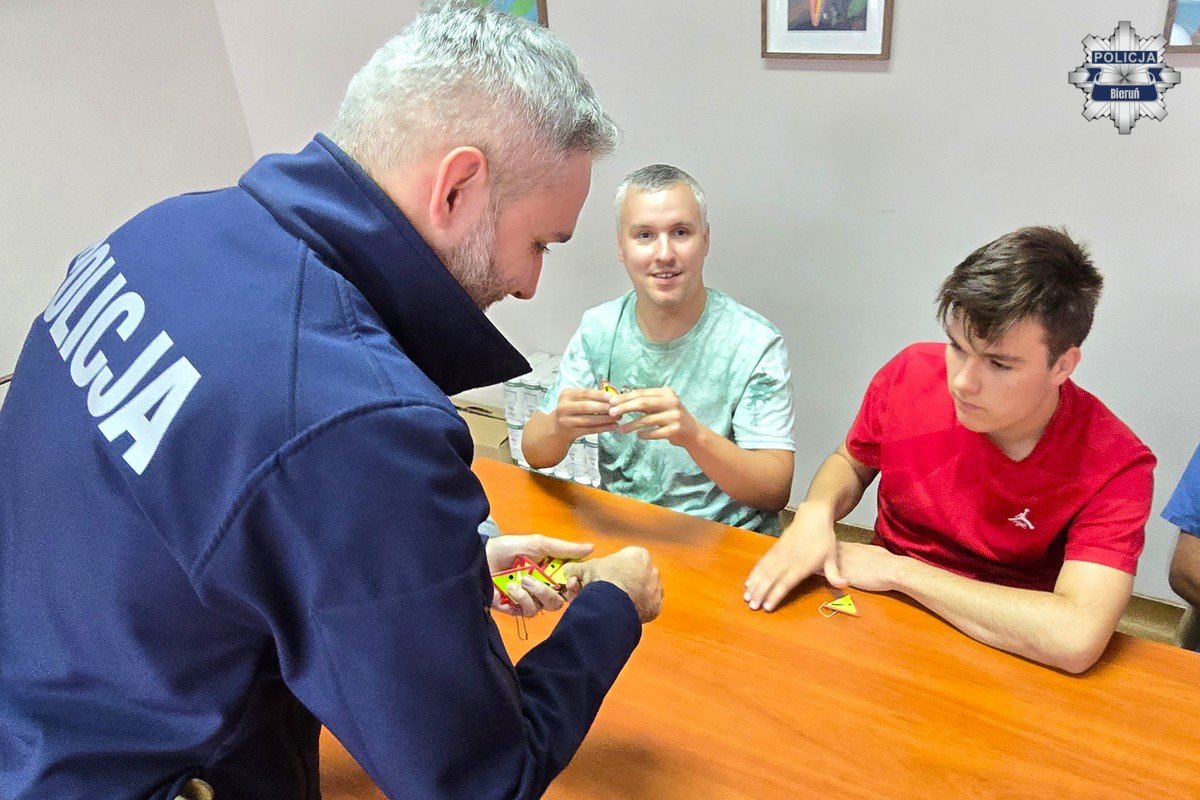 Głównym tematem prelekcji przeprowadzonych przez bieruńskiego mundurowego było bezpieczeństwo w ruchu drogowym. Policjant przypomniał uczestnikom obu spotkań o obowiązku przechodzenia przez pasy i stosowania się do sygnalizacji świetlnej. Uczył też, jak poruszać się po jezdni w przypadku braku chodnika lub pobocza. Nieodzownym elementem każdej pogadanki jest zwrócenie uwagi na korzyści płynące z noszenia odblasków i bycia widocznym na drodze.