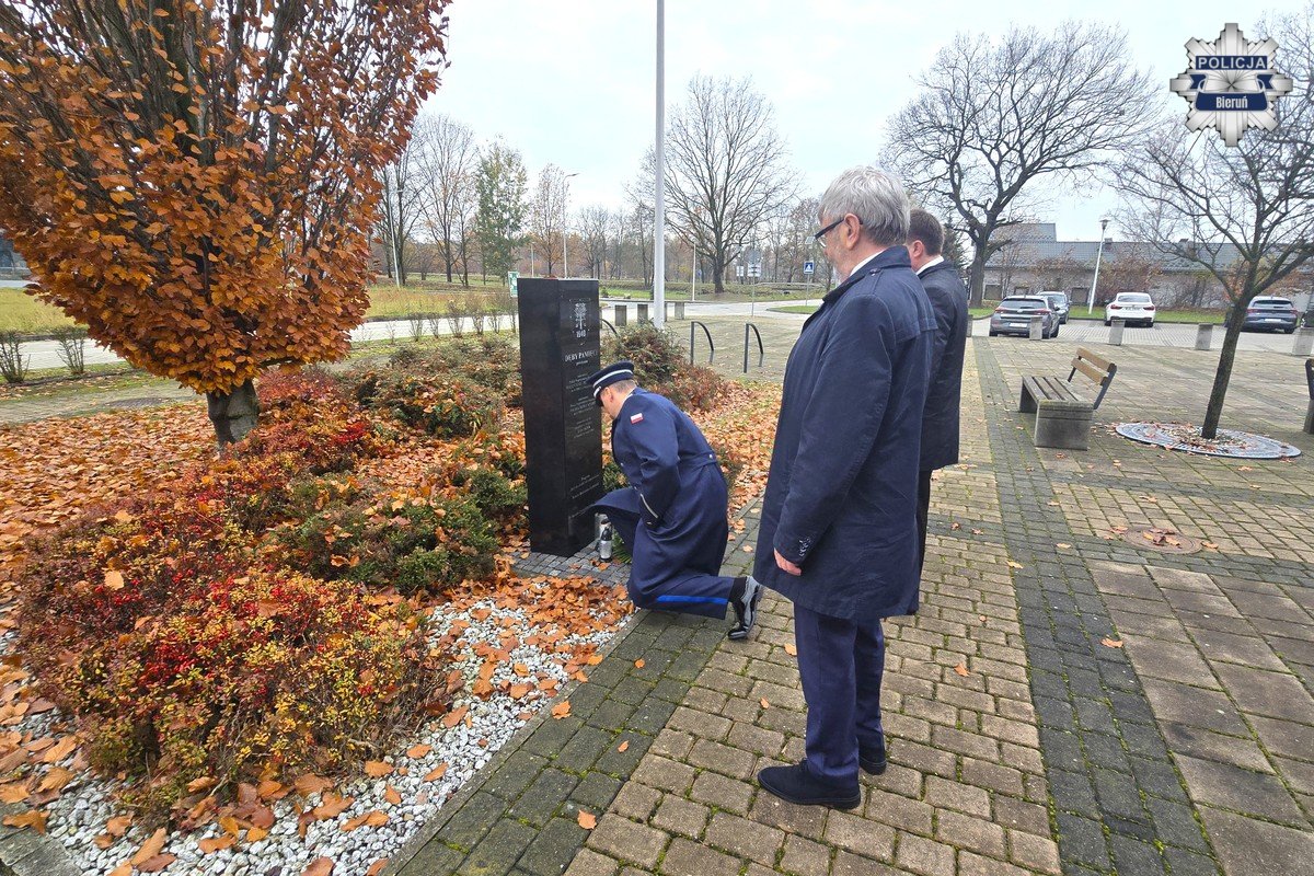 W trakcie powiatowych obchodów Narodowego Święta Niepodległości policjanci tradycyjnie już złożyli hołd i honory pod obeliskiem „Dęby Pamięci” upamiętniającym zamordowanych aspirantów Policji Województwa Śląskiego - Walentego Piekorza i Wilhelma Spyrę. Policjanci wzięli ponadto udział w uroczystościach zorganizowanych przez miasta Bieruń i Imielin, gdzie złożyli kwiaty, dziękując i oddając hołd poległym bohaterom, którzy walczyli o wolną i niepodległą Polskę.