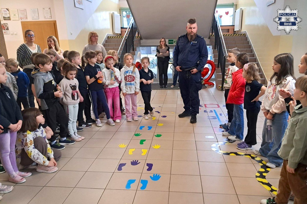 Dzielnicowy z bieruńskiej komendy w ramach akcji „Bezpieczne Ferie 2026” odwiedził Szkołę Podstawową numer 2 w Chełmie Śląskim. Spotkanie z najmłodszymi było dla mundurowego okazją do omówienia i przypomnienia zasad bezpiecznego zimowego wypoczynku.