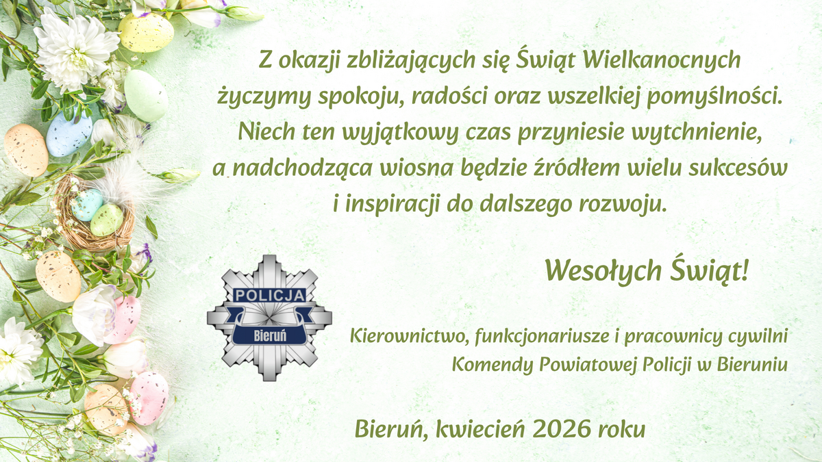 Życzenia Wielkanocne bieruńskich policjantów oraz pracowników cywilnych