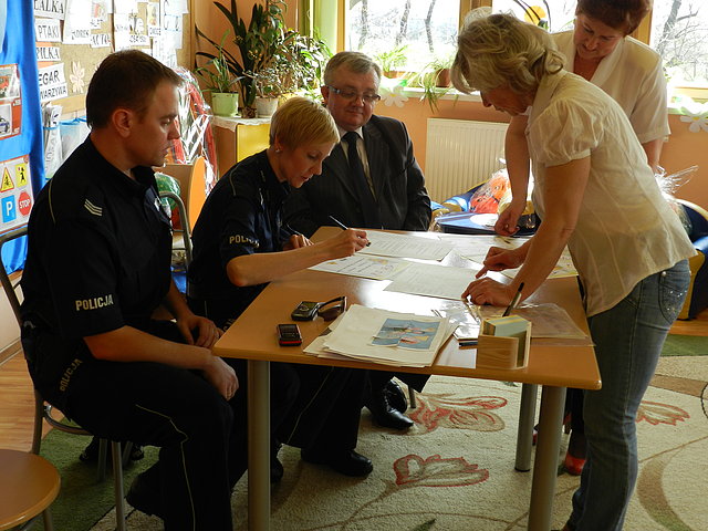 Dzisiaj w Przedszkolu Miejskim w Imielinie odbył się konkurs pn. "Bezpieczni Razem" dla dzieci 6-letnich. Była to już XI edycja tego typu przedsięwzięcia. Do konkursu przystąpiło 7 trzyosobowych drużyn sześciolatków z imielińskiego przedszkola. Maluchy odpowiadały na pytania dotyczące bezpieczeństwa na drodze, na placu zabaw i w domu. Oceniały także sytuacje przedstawione na ilustracjach określając prawidłowe postępowanie. Dzieci musiały wykazać się także sprytem i szybkością działania w układaniu puzli na temat bezpieczeństwa i uzupełnianiu specjalnie przygotowanych sygnalizatorów świetlnych. 6-latkowie świetnie radzili sobie z wszystkimi zadaniami oraz wykazali sie ogromną wiedzą na temat bezpieczeństwa. W komisji konkursowej obok Wiceprzewodniczącego Rady Miasta Imielin Dariusza Staszewskiego zasiedli także przedstawiciele z Komendy Powiatowej Policji w Bieruniu. Przedszkolaki zostały nagrodzone dyplomami, upominkami oraz nagrodami, które trafią na wyposażenie grup uczestniczących w konkursie.